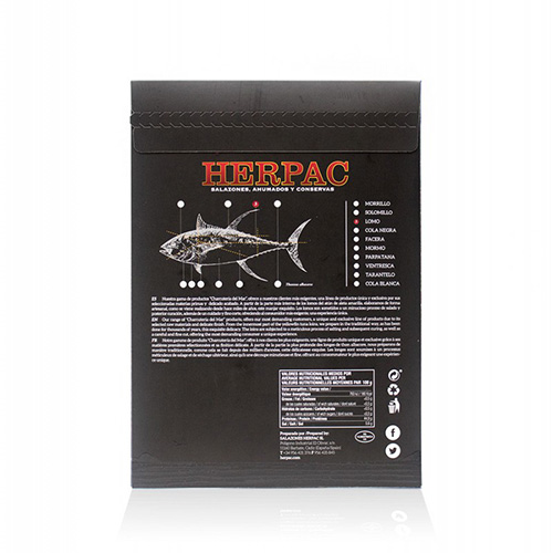Fins talls de Mojama Extra IGP Barbate. A partir de la part més interna dels lloms de la tonyina, elaboren de forma artesanal aquest menjar exquisit. Els lloms són sotmesos a un minuciós procés de salat i posterior curació, a més d'una cura i fi tall, oferint al consumidor més exigent, una experiència única.