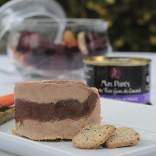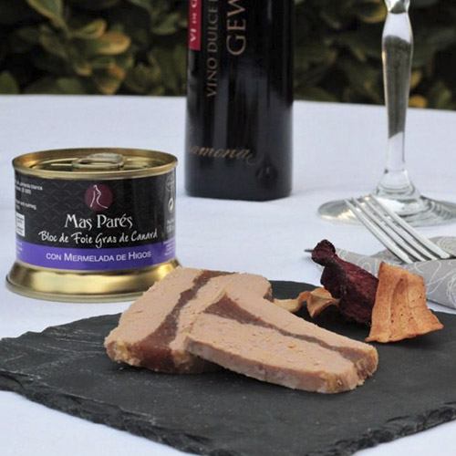 Fetge gras d’ànec assaonat, emulsionat amb rom, i amb una capa central de melmelada de figues. Sotmès a tractament tèrmic per a obtenir un producte en conserva d’excel·lent qualitat, sabor i textura. Sens dubte un dels productes estrella de la nostra empresa.